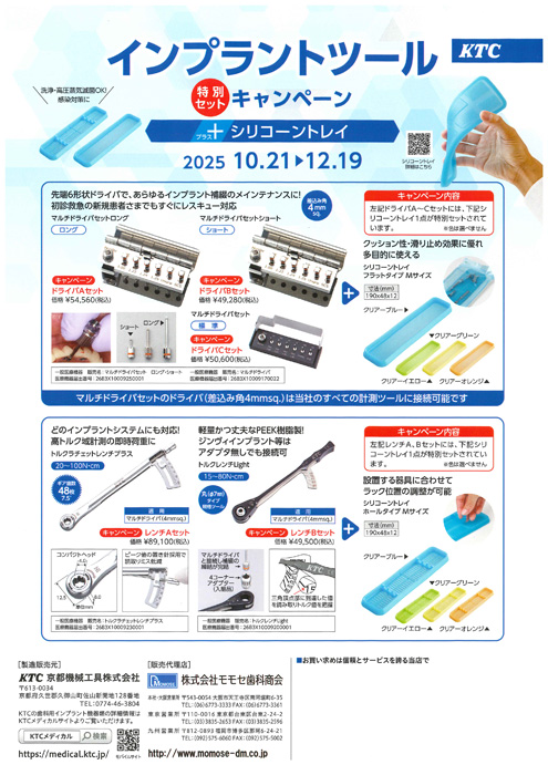 2025. 9/22(月) 〜 10/20(月) i-TFC®システム 光ファイバーポスト® ご愛顧感謝キャンペーン サンメディカル 2025. 9/21(日) 〜 10/20(月) ソールバイト S プラス エクストラハード・ボリュームパック Autumn SALE プレミアムプラスジャパン 2025. 9/22(月) 〜 10/20(月) ティースメイト® ディセンシタイザー ご愛顧感謝キャンペーン クラレノリタケデンタル 2025. 9/22(月) 〜 10/20(月) ティオンオフィス&ティオン ホーム ウィズ スピードホワイトニングキャンペーン ジーシー 2025. 9/22(月) 〜 10/20(月) 器具除菌キャンペーン 佐藤歯材 2025. 8/21(木) 〜 10/20(月) コメット FG ダイヤモンドバー DIAO キャンペーン モモセ歯科商会 2025. 8/21(木) 〜 10/20(月) エンドソリューションキャンペーン ヨシダ 2025. 8/21(木) 〜 10/20(月) 口腔内細菌カウンタ 持ち運びバッグセット キャンペーン ヨシダ 2025. 8/21(木) 〜 10/20(月) 口腔機能モニター Oramo-bfセンサー&カバー 増量キャンペーン ヨシダ 2025. 7/22(火) 〜 10/20(月) Implat studio/Implant studio planner TRIO5® 新規導入サマーキャンペーン モリタ 2025. 7/22(火) 〜 10/20(月) 小器械サマーセール 2025 ヨシダ 2025. 10/1(水) 〜 10/31(金) パラ デンチャーシステム ご愛顧キャンペーン クルツァージャパン 2025. 9/22(月) 〜 11/20(木) JDS抜歯窩掻爬用ダイヤモンドバーキット 新発売記念キャンペーン 日本歯科商社 2025. 9/22(月) 〜 11/20(木) コメット 技工用カーバイドカッター 感謝セール モモセ歯科商会 2025. 9/22(月) 〜 11/20(木) ジェントルスティム・EX 新発売キャンペーン モリタ 2025. 10/1(水) 〜 11/20(木) G-フロー ONE 発売記念 キャンペーン ジーシー 2025. 9/22(月) 〜 11/20(木) NiTi RE ファイル スペシャルプライスキャンペーン ヨシダ 2025. 9/22(月) 〜 11/20(木) ヘムコン デンタル ドレッシング ご愛顧感謝キャンペーン ヨシダ 2025. 10/21(火) 〜 11/28(金) プロエンドご愛顧&規格追加キャンペーン 山八歯材工業 2025. 9/29(月) 〜 11/28(金) スイーツカン ソフト スペシャルキャンペーン ビー・エス・エー・サクライ