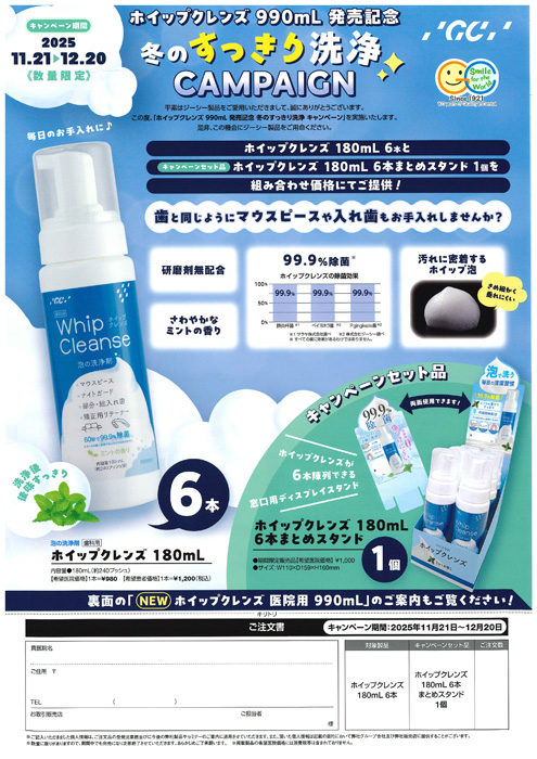 2025. 10/24(金) 〜 11/14(金) 「いい歯の日」特別企画タフトシリーズ スマイルバッグ プレゼントキャンペーン オーラルケア 2025. 10/24(金) 〜 11/14(金) 「いい歯の日」特別価格 キシリトールガム サンプル100パック プレゼントキャンペーン オーラルケア 2025. 10/21(火) 〜 11/20(木) LION 第4回 レッツ!チャレンジ! サンプル de マッチ ライオン歯科材 2025. 10/21(火) 〜 11/20(木) ユースキン サンプル付きお試しキャンペーン 日本歯科商社 2025. 10/21(火) 〜 11/20(木) LION 2025プレミアムグッズセール vol.5 ライオン歯科材 2025. 10/21(火) 〜 11/20(木) ジーシールシェロ カレンダーキャンペーン ジーシー 2025. 9/22(月) 〜 11/20(木) Dr.JAW インテンシブクリーム 新発売キャンペーン 日本歯科商社 2025. 9/22(月) 〜 11/20(木) PLUM-PINK lIP SHOT キャンペーン 日本歯科商社 2025. 9/22(月) 〜 11/20(木) POs-Ca F オータムキャンペーン モリタ 2025. 9/22(月) 〜 11/20(木) ソニッケア― 6100プロフェッショナル 新発売キャンペーン モリタ 2025. 11/4(火) 〜 11/28(金) ルミデント オータムキャンペーン クルツァージャパン 2025. 11/1(土) 〜 11/30(日) 魔法の舌ブラシ キャンペーン トータルサポートOTA 2025. 9/30(火) 〜 12/10(水) キシリトール スイーツまつり ビー・エス・エー・サクライ 2025. 10/21(火) 〜 12/19(金) フロー・サイナスケア ウィンターキャンペーン モリタ 2025. 10/21(火) 〜 12/19(金) クラプロックス ハイドロソニック プロ トライアルキャンペーン ヨシダ 2025. 9/22(月) 〜 12/19(金) トクヤマ マルチシャイン 新発売キャンペーン トクヤマデンタル 2025. 11/21(金) 〜 12/20(土) ルシェロ おとなのトータルケア歯みがきジェル Re:Fresh キャンペーン ジーシー 2025. 10/21(火) 〜 12/20(土) ルシェロ おとなのトータルケアはみがきジェル Re:Fresh キャンペーン ジーシー 2025. 10/21(火) 〜 12/25(木) サム ウインターセール サンデンタル 2025. 10/24(金) 〜 2026. 1/9(金) タフト24・17・20 クリスマス&お正月 スペシャルパッケージ キャンペーン オーラルケア