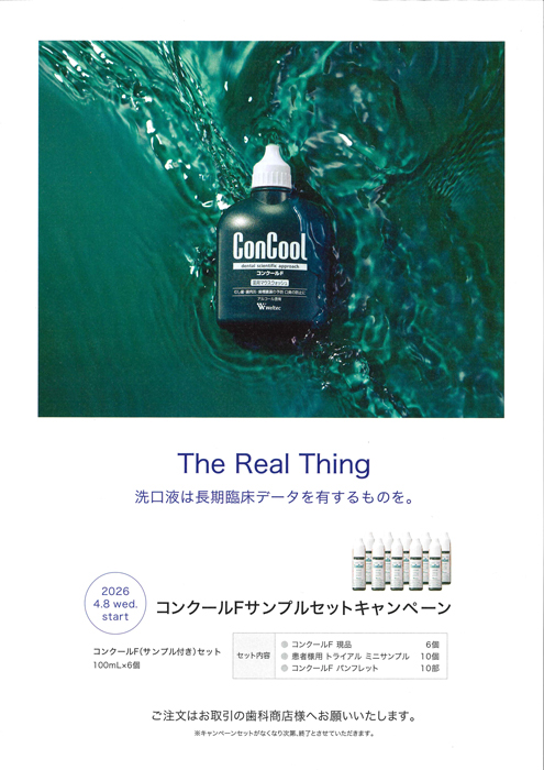 2026. 3/2(月) 〜 3/31(火) ラボスコープS ご愛顧キャンペーン・技工用ハンドピース ご愛顧キャンペーン 山八歯材工業 2026. 2/24(火) 〜 3/31(火) ソニッケア― スプリングスマイル キャンペーン モリタ 2026. 2/24(火) 〜 3/31(火) 家族ではじめよう! ソニッケアー コードレス パワーフロッサ―3000 2コパックキャンペーン モリタ 2026. 3/2(月) 〜 3/31(火) ルミデント スプリング キャンペーン クルツァージャパン 2026. 3/23(月) 〜 4/20(月) はにぐー™ トライアルキャンペーン 大榮歯科産業 2026. 3/23(月) 〜 4/20(月) LION スプリングセール 2026 vol.2 ライオン歯科材 2026. 1/21(水) 〜 4/20(月) クラプロックス 歯ブラシ CSウッドディスプレイキャンペーン ヨシダ 2026. 1/21(水) 〜 4/20(月) クラプロックス ブラックイズホワイト キャンペーン ヨシダ 2026. 4/1(水) 〜 6/19(金) SODATECO(ソダテコ) 新発売キャンペーン サンスター