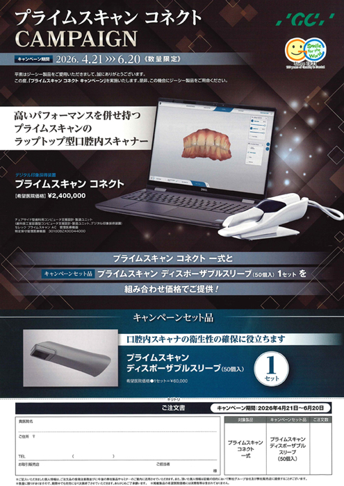 2026. 3/24(火) 〜 4/17(金) コメット FG ダイヤモンドバー DIAO キャンペーン モモセ歯科商会 2026. 3/21(土) 〜 4/20(月) プレミアムプラスジャパン スプリングセール2026 プレミアムプラスジャパン 2026. 2/24(火) 〜 4/20(月) Bien Air ハンドピース キャンペーン モモセ歯科商会 2026. 4/1(水) 〜 4/20(月) ホワイトニング サポート キャンペーン ジーシー 2026. 3/2(月) 〜 4/20(月) デンタルテクニカ スプリングセール2026 デンタルテクニカ 2026. 3/2(月) 〜 4/20(月) デュアルフォーマー Ⅱ 導入支援キャンペーン 大榮歯科産業 2026. 2/24(火) 〜 4/20(月) レジン系仮封材 レジンシール Ⅱ 増量キャンペーン ヨシダ 2026. 3/23(月) 〜 4/20(月) 器具除菌キャンペーン 佐藤歯材 2026. 2/24(火) 〜 4/20(月) フロー・サイナスケア スプリングキャンペーン モリタ 2026. 2/24(火) 〜 4/20(月) XP2シリーズ 発売記念キャンペーン ジーシー 2026. 3/9(月) 〜 4/30(木) BSAニトリス 半額キャンペーン ビー・エス・エー・サクライ 2026. 4/1(水) 〜 4/30(木) プリニア×ルシェロ スマイルケア キャンペーン ジーシー 2026. 3/2(月) 〜 4/30(木) 照射器セール デンタルテクニカ 2026. 3/2(月) 〜 4/30(木) アクリエイト 新発売キャンペーン 山八歯材工業 2026. 4/21(火) 〜 5/20(水) フジルーティング® EX-Plus 新規&ご愛用感謝 キャンペーン ジーシー 2026. 4/21(火) 〜 5/20(水) ジーセムONE シリーズ 新規&ご愛用感謝キャンペーン ジーシー 2026. 4/21(火) 〜 5/20(水) ティオン ホーム ウィズ 時短!ホワイトニングキャンペーン ジーシー 2026. 3/21(土) 〜 5/20(水) エンドレスキュー 破折ファイル除去システム キャンペーン モモセ歯科商会 2026. 3/23(月) 〜 5/20(水) 春のゴーグル キャンペーン サンデンタル 2026. 4/21(火) 〜 6/19(金) 2026口腔機能低下症関連製品キャンペーン ヨシダ