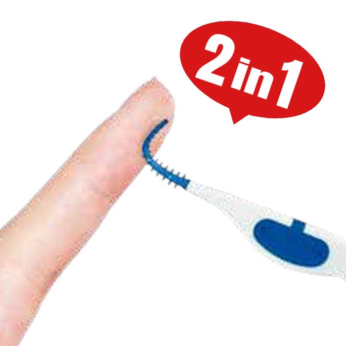 「やわらかゴムブラシ&フロス」は、ワイヤーレスのやわらかいゴム状の歯間ブラシと、どんな隙間にもしっかり届く丈夫なフロスが一体になった、まさに「優れモノ」。