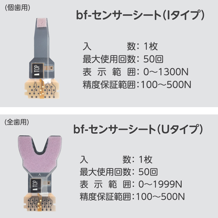 口腔機能モニター Oramo2 ¥240,000- 【消耗品】 ○ bf-センサーシート(Uタイプ)(全歯用) ¥21,000- ○ bfーセンサーシート(Iタイプ)(個歯用) ¥21,000- ○ bfーカバー(Uタイプ) 50入(全歯用) ¥6,500- ○ bf-カバー(Iタイプ) 50入(個歯用) ¥6,500- |