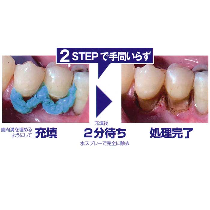 クリアマージンは、ペーストに含まれる塩化アルミニウムが、歯肉溝及び辺縁歯肉の滲出液や血液を抑制しフィニッシュラインの印象採得が可能です。
