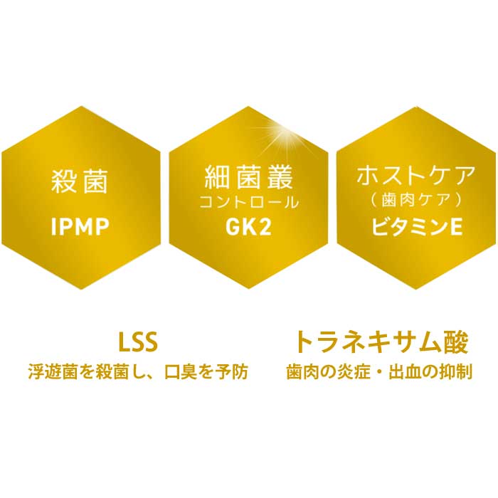 IPMP・ビタミンE を、薬⽤⻭みがき類承認基準最⼤濃度配合しました。