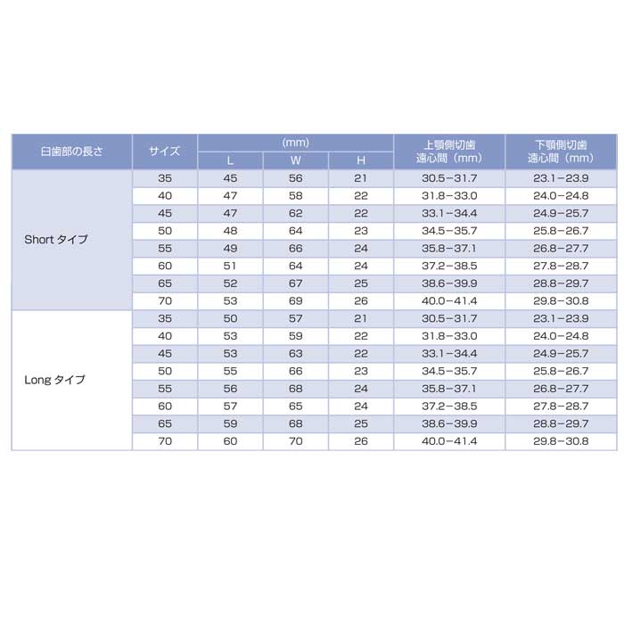 デバイスの凸部を合わせ反対側の側切歯遠心までの距離を目安にサイズ選択します。