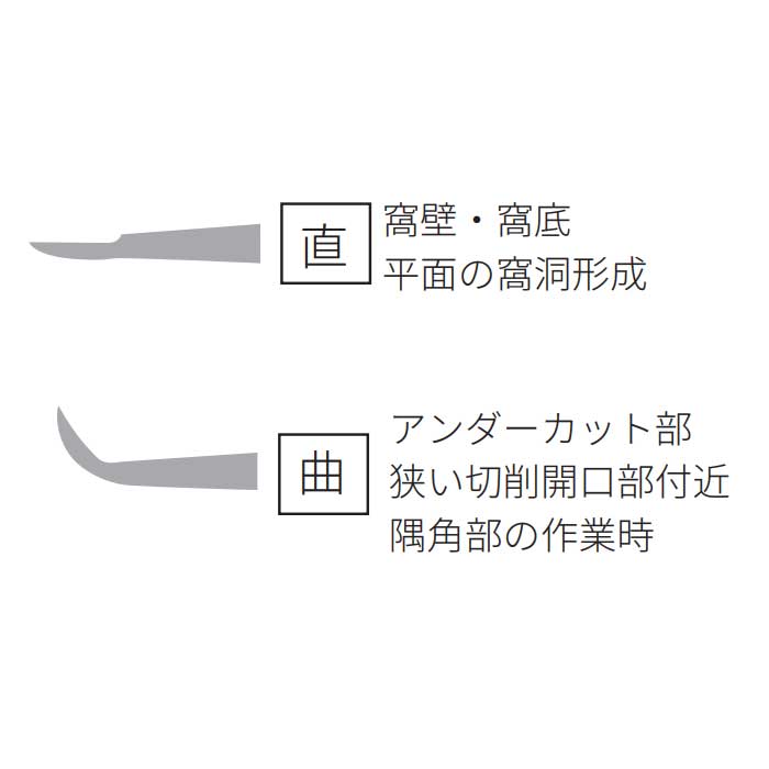 先端の円に沿って刃がついているので、窩洞形成・軟化象牙質の除去等を効率よく行うことができます。