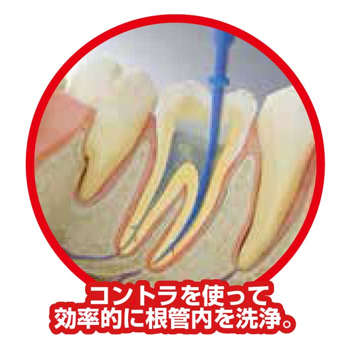 根管内の細菌・汚れの除去にはしなやかで柔軟性あるポリマーチップでの洗浄が有効です。