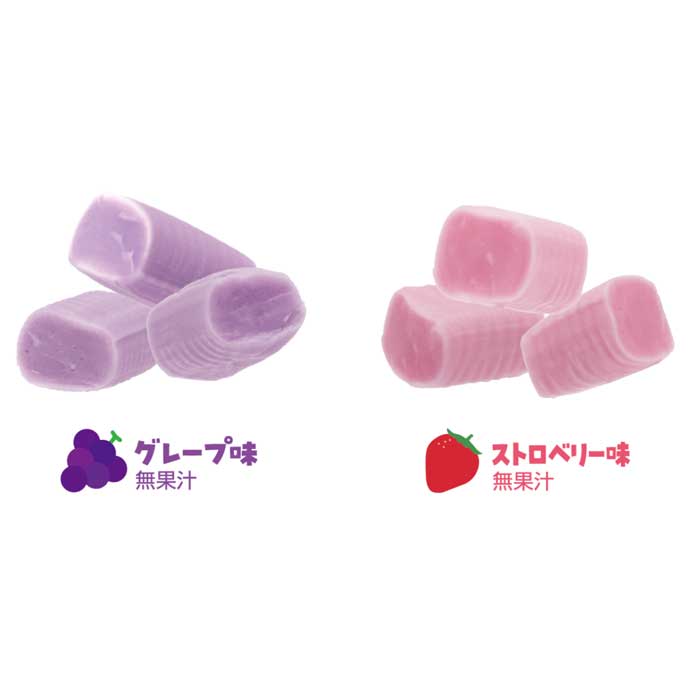 やや硬めの食感と適度な付着性・凝集性にこだわり、口腔機能発達不全症に関連する口唇閉鎖力・舌圧・咬合力の向上に着目して開発されたノンシュガーのチューイングキャンディです。