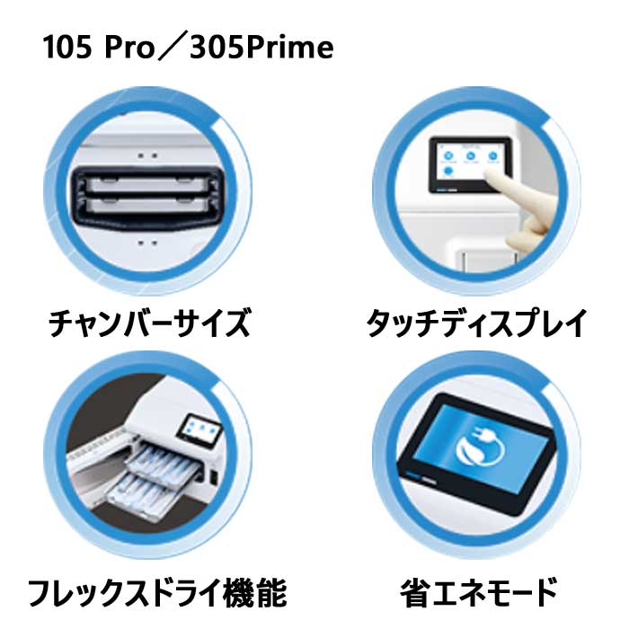クラスBの高圧蒸気滅菌器でありながら、滅菌工程を短時間で完了する「バキュクレーブ® 105 Pro / 305 Prime」です。