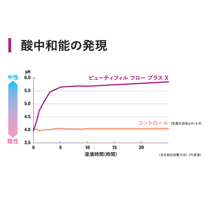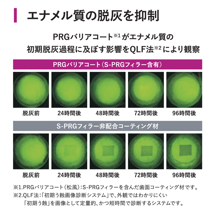 6種類のイオンリリースにより、抗プラーク付着性の他、酸中和能の発言やエナメル質の脱灰を抑制する特徴を有します。