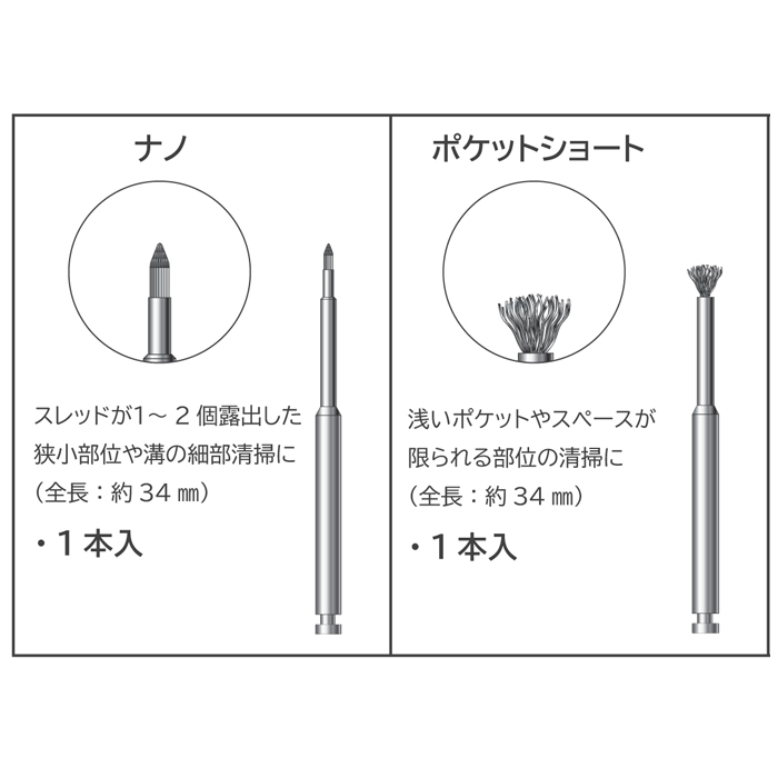 ○インプラント清掃用 NiTi ブラシ(単品)¥2,800- ○インプラント清掃用 NiTi ブラシ アソート¥9,900- |