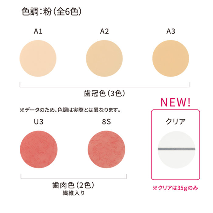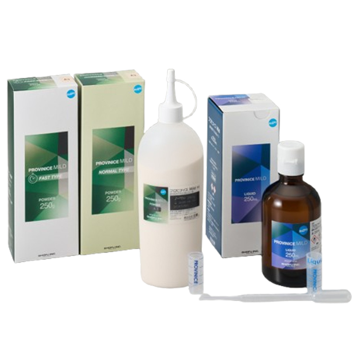 ●プロビナイス Mild ファストタイプ 1-1セット‥5,800円 【セット内容】 粉35g(色調:A2、8S)、液50ml、粉用キャップ(A2:ツイストキャップ/8S:トンガリキャップ) 液用ノズルキャップ、紛量計、液量計、混和器×2、混和ホルダー、レジン用筆α ●粉 ファストタイプ 【色調】A1.A2.A3/U3.8S/クリア ※クリアは35gのみ 粉35g‥2,900円 粉250g ‥11,000円 ●液 ファストタイプ 液50ml‥2,900円 液250ml‥7,000円 |