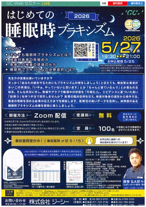 | 概要 | ◆そもそも睡眠時ブラキシズムとは? ◆検査対象者の見極め方 ◆患者への検査の誘導の仕方 ◆睡眠時ブラキシズムの治療選択とは? 先生方の言葉は届いていますか? せっかく「あなたの歯を守るためにもブラキシズム対策をしましょう」と伝えても、無自覚な患者が多いこの疾患は、「いやぁ、やっていないと思います」とか「ちゃんと寝ているんで」とか言われる 始末。そんな状況に対し、数値やグラフで睡眠中の状態を「可視化」し、エビデンスに基づいた高い「説明力」を持つ手法で提示しませんか? 実際の臨床症例を交え、検査対象者の選定から操作方法、患者の理解を深める結果の伝え方までを解説します。信頼性の高いデータを活用し、納得感のある睡眠時ブラキシズム治療を医院に導入しましょう。 |